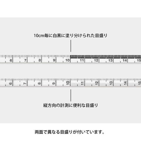 表の目盛りは横向きで、10cmごとに色分けされています。