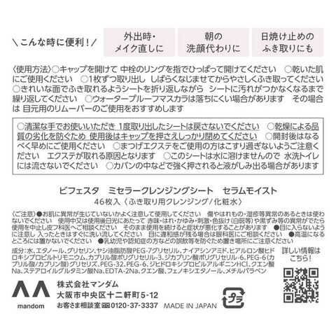 マンダム Bifesta(ビフェスタ) ミセラークレンジングシート セラムモイスト 50枚入 限定増量品