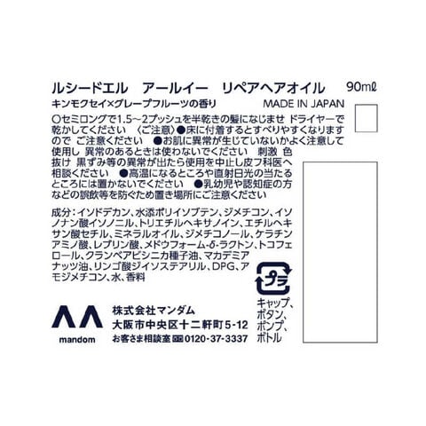 マンダム ルシードエル アールイー リペアヘアオイル 90mL
