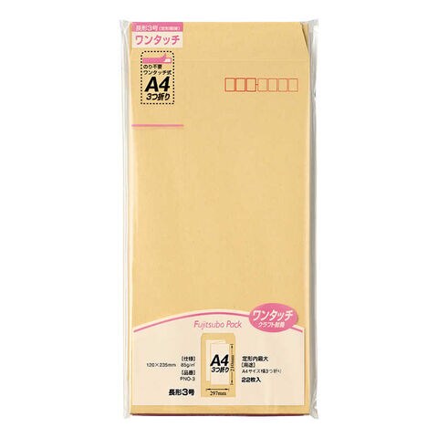 A4サイズ横3つ折りが入る定形郵便最大のクラフト封筒です。