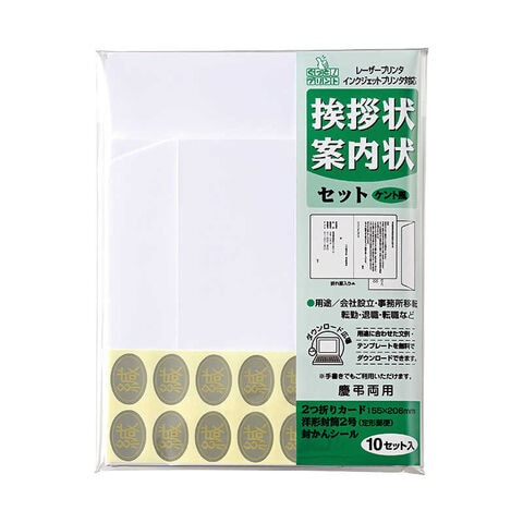 セット内容:封筒(洋2)10枚、二つ折りカード10枚、封緘シール1枚(10片付)。