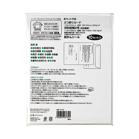 一片サイズ:二つ折りカードサイズ:155×206mm封筒サイズ:114×162mm(洋形2号)封緘シールサイズ:25×18mm(1片)