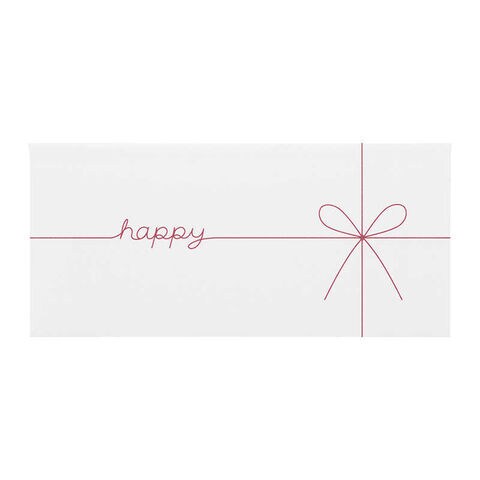 印刷された水引飾りには「happy」の文字が一緒にデザインされています。