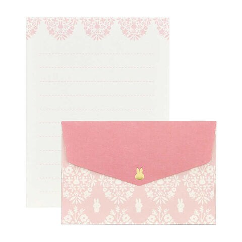 ディック・ブルーナのイラストを組み合わせて表現したダマスク柄と、封筒に施した箔押しエンボス加工のミッフィーがポイント。