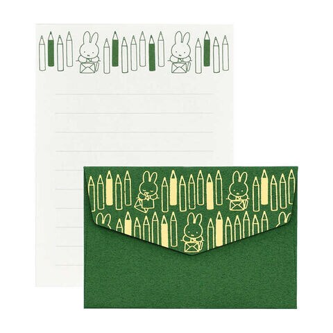 便箋と封筒の柄はお手紙を書くミッフィーとえんぴつをモチーフにしています。