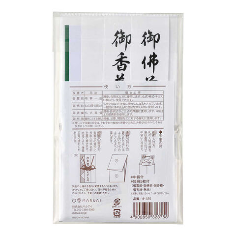 「御霊前」、「御布施」、「御佛前」、「御香奠」、無地の短冊5枚入。