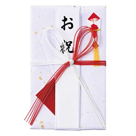 金銀振りの檀紙を使用した、婚礼以外の御祝事全般の金包みとして最適な赤白7本花結びの大判タイプ金封です。