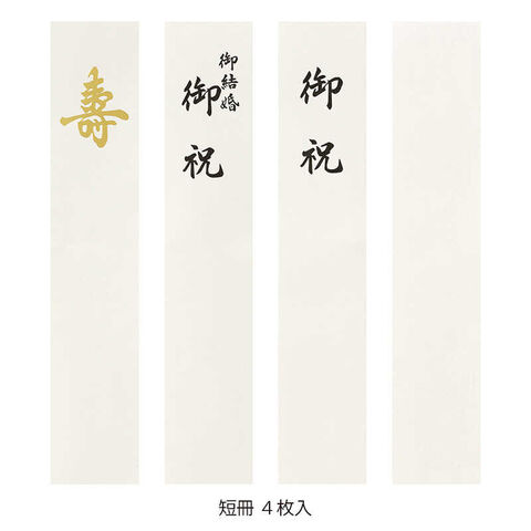 ◆「寿」、「御結婚御祝」、「御祝」、無地の短冊4枚入。