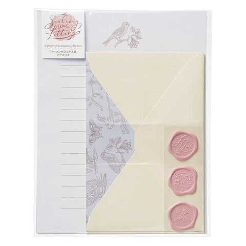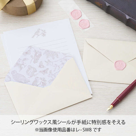 本物のシーリングワックスのような立体感あるシールつきで、便箋や封筒とコーディネートされているのでこれひとつで手軽に雰囲気を楽しめます。