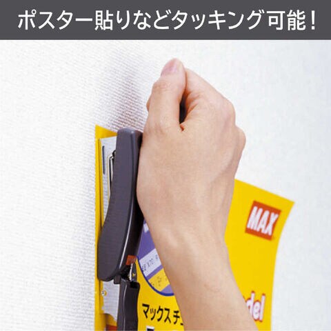 使用針/No.10-1M、針装てんは大きく開いて入替えやすいワンタッチオープン方式(上カバーを開くと同時にマガジン部の針押しが引き上げられます)を採用、とじ枚数は2枚~20枚、タッキング、きわ綴じも可能。