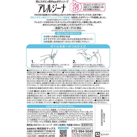 マックス アレルジーナ抗ヒスタミン成分配合泡ボディソープ 詰替400mL