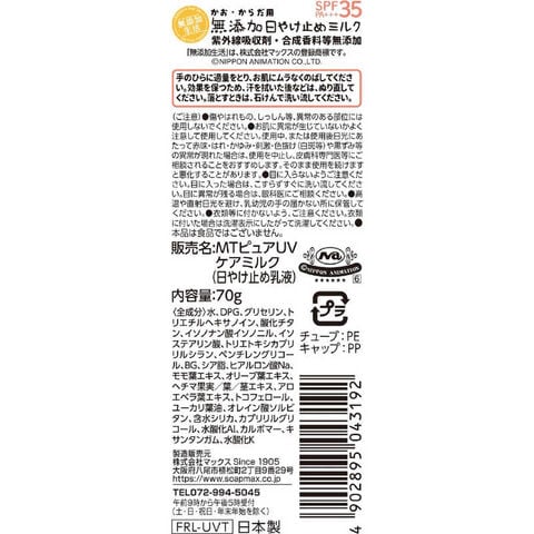 マックス 無添加生活日焼け止めミルク70gチューブ