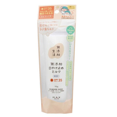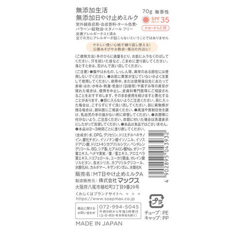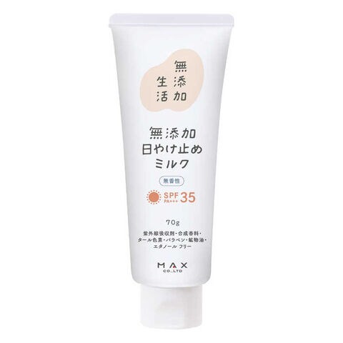 マックス 無添加生活 無添加日やけ止めミルク 無香性 チューブ 70g ムテンカヒヤクドメムコウ