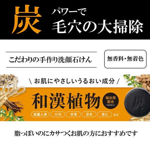 炭パワーで毛穴の汚れを吸着する、透明石けんです。