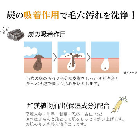 吸着力にすぐれた薬用炭の働きで、毛穴につまった皮脂や老廃物を無理なく落とせます。