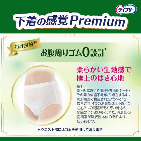 下着の感覚はそのままに、おなか周りゴム0設計でしめつけないから、極上のはき心地がつづくプレミアムタイプの紙パンツです。