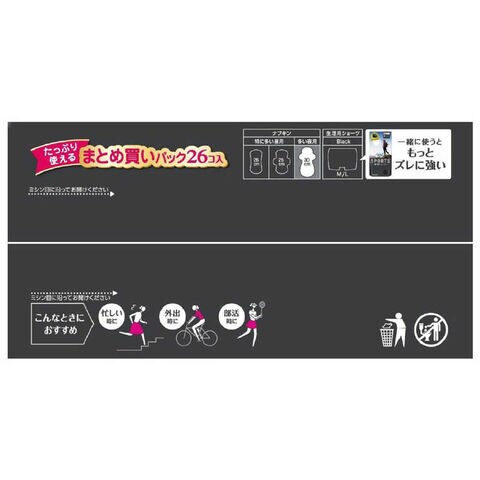 3Dフィット吸収体が多量に吸収するので、多い日の動きモレも安心。更に、フィット性の高い独自形状・ワイドウィング・ピタッとシールが動きや衝撃によるズレを防ぎ、ナプキンのフォームを保つので動きズレにも対応。