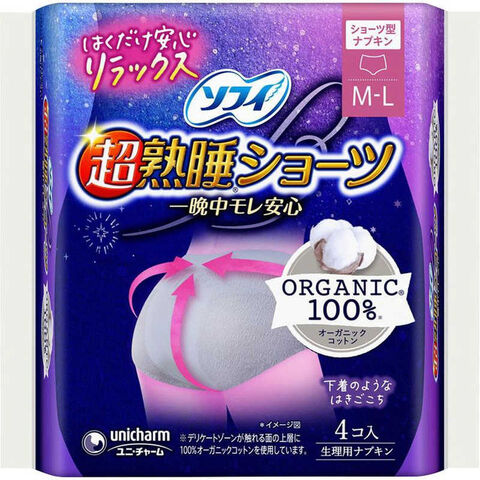 ユニチャーム ソフィ 超熟睡ショーツ オーガニックコットン M-Lサイズ 4枚