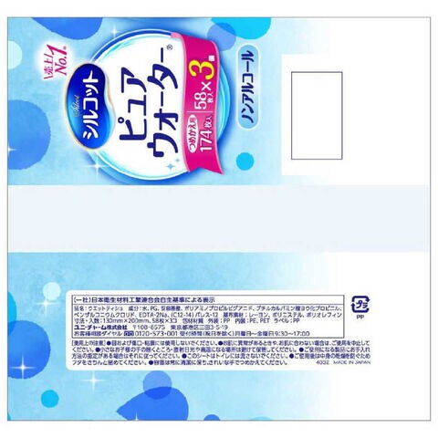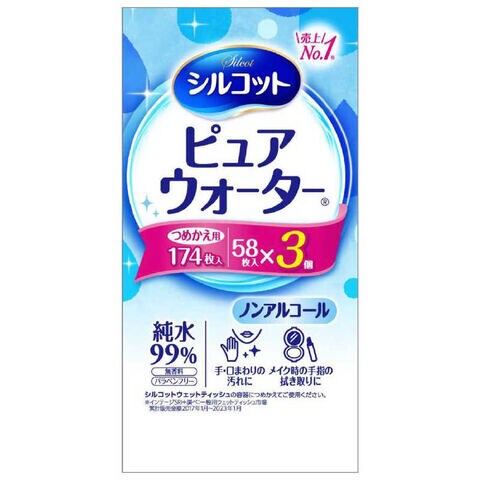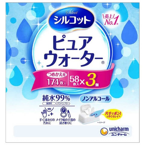 ユニチャーム シルコットピュアウォーターウェットティッシュ 替 58枚×3
