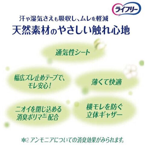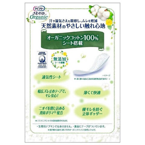 オーガニックコットン100%※1シート搭載。天然素材の触れ心地汗や湿気さえも吸収し、ムレを軽減。ニオイを閉じ込める消臭ポリマー※2配合。
