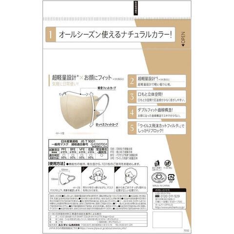 ●立体形状だから圧迫感少ない着け心地と、なじみやすいナチュラルカラーで日常使用に最適。