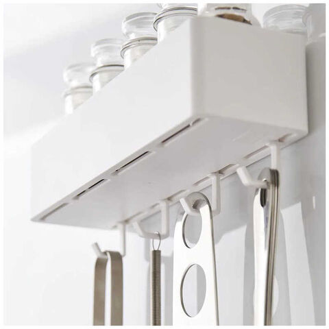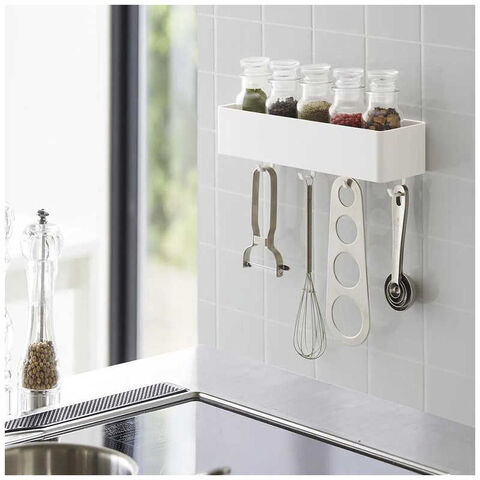 コンロ周りの壁面につけて調味料ラックやキッチンツールの収納に。