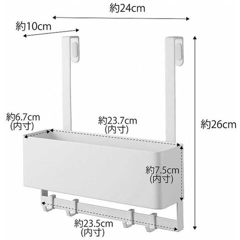 仕様1:サイズ: 扉用フック使用時/付属フックなし=(約)W24×D10×H26cm 木ネジ使用時/付属フックなし=(約)W24×D7.5×H11.5cm 内寸収納部=(約)W23.7×D6.7×H7.5cm バー=(約)W23.5cm