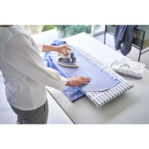 衣類をアイロン台の下に滑り込ませられるので、立体的にアイロン掛けができます。