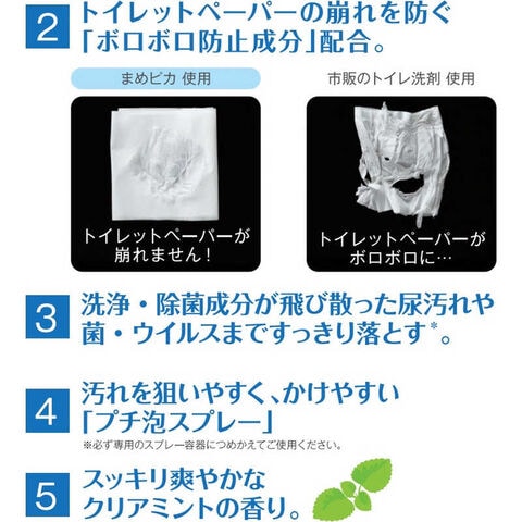 ●泡が出すぎず垂れ落ちにくいので、便座の表裏や便器のふちなどの細い部分にも使いやすく、手早く拭きとれます。