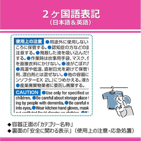 成分:界面活性剤(エステル型ジアルキルアンモニウム塩、ポリオキシエチレンアルキルエーテル)、安定化剤、香料、抗菌剤、柔軟補助剤