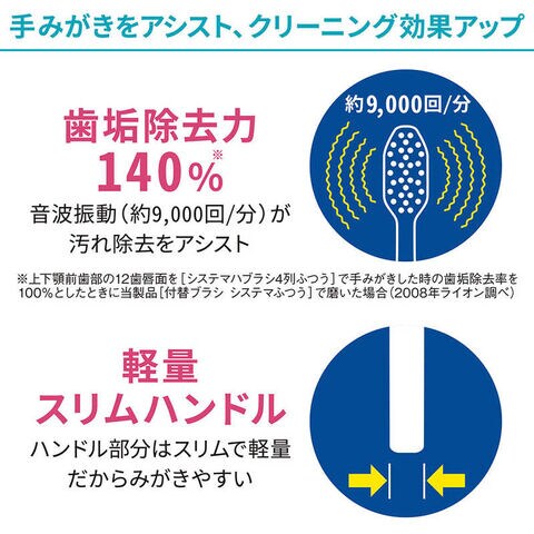 自分の口に最適なブラシを装着してブラッシングすることで、音波振動が手みがきをアシストしてクリーニング効果がUPする電動“アシスト”ブラシ。