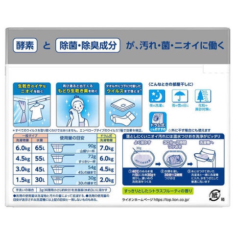 いつものお洗濯で汚れ・菌・ウイルスまで落とし※、部屋干し時の生乾きのイヤなニオイを防ぐ衣料用粉末洗剤