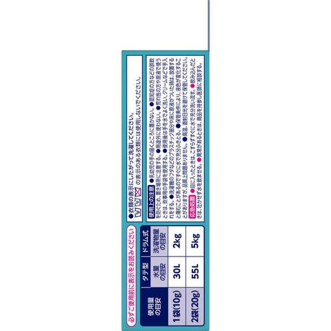 仕様3:【使用量目安】1袋(10g):30L(タテ型)、2kg(ドラム式)2袋(20g):55L(タテ型)、5kg(ドラム式)