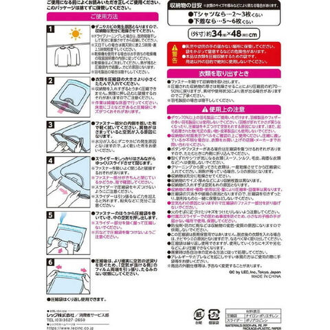 仕様2:材質:<材料>圧縮袋:ナイロン・ポリエチレンスライダー:ポリプロピレン