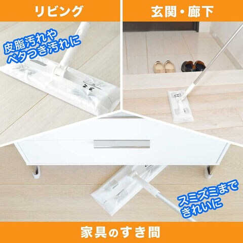 ●お手持ちのフローリングワイパーに取り付けてご使用いただけ、かんたんにキレイなツヤに仕上がります。