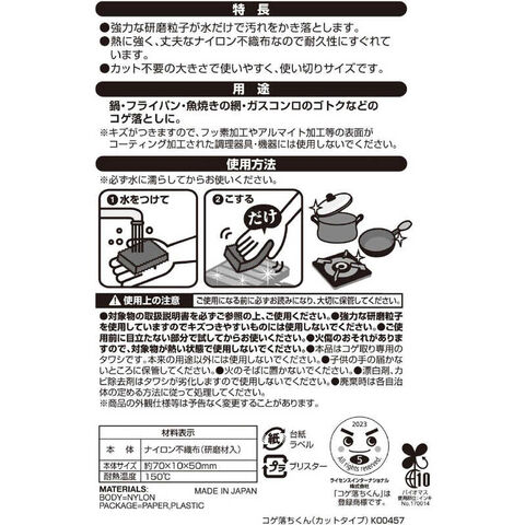 ・鍋・フライパン・魚焼きの網・ガスコンロのゴトクなどのコゲ落しに。