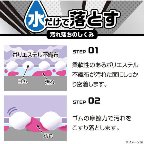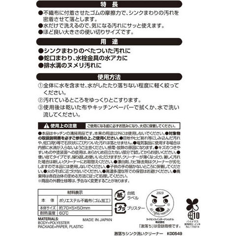 不織布に付着させたゴムの摩擦力で、シンクまわりの汚れを密着させて落とします。