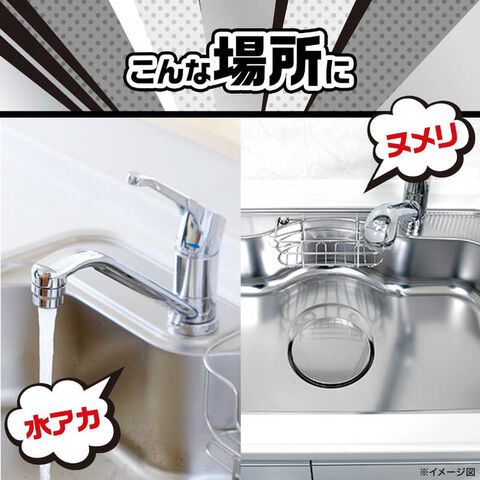 シンクまわりのべたついた汚れ・蛇口周りや水栓金具の水アカ・排水口のヌメリよごれに使えます。