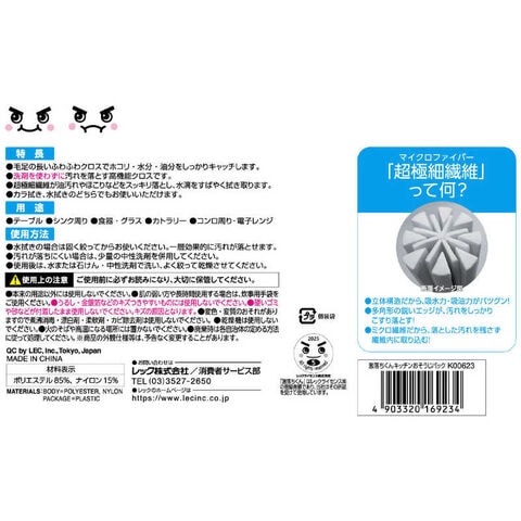 ●超極細繊維が油汚れやほこりなどをスッキリ落とし、水滴をすばやく拭き取ります。