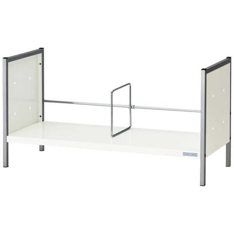 仕様1:[製品寸法]W672xD250xH354mm[製品質量]3500g・側板付・サポータ1個付[棚板耐荷重]25kg[フレーム]スチールパイプ13mm角(粉体塗装)[棚板]スチール鋼板(粉体塗装)[再生ポリスチレン樹脂製引出し]A4判横型(内寸W315×D220×H37mm)[サポータ]1個付(スライド可動式)[棚下有効高]83mm[上下連結用部品]2個付