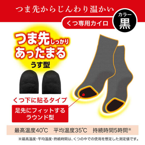 ●最高温度40℃・平均温度35℃ 持続時間5時間(くつしたの中での使用を想定した測定値)