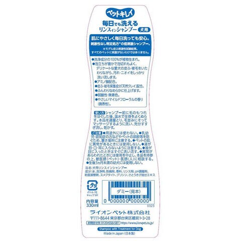 ライオンペット ペットキレイ 毎日でも洗える リンスインシャンプー 愛犬用 330ml