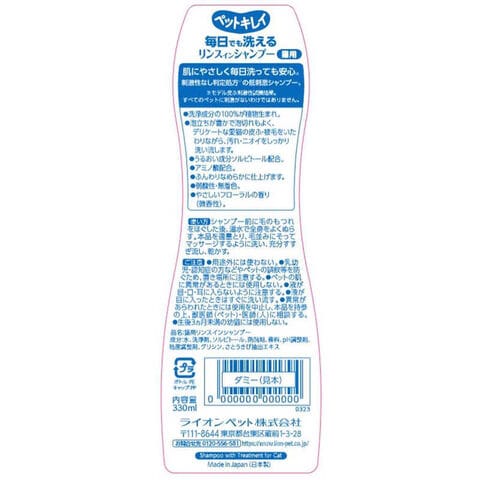 ライオンペット ペットキレイ 毎日でも洗える リンスインシャンプー 愛猫用 330ml