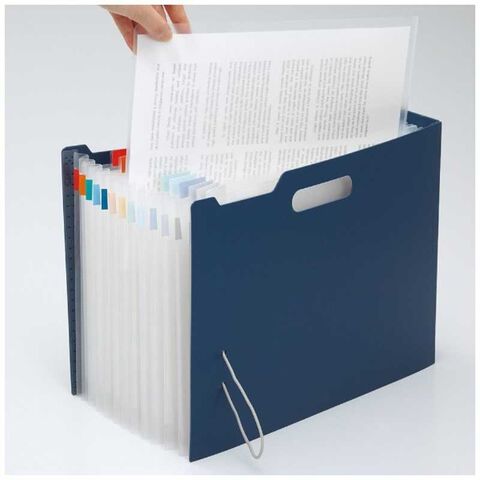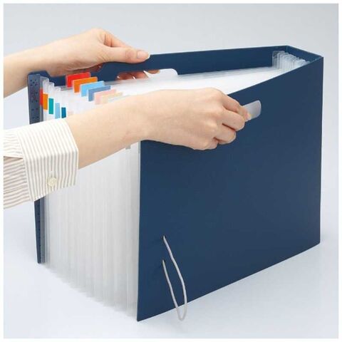 分類・検索性に優れたジャバラタイプのボックスファイル。卓上では大きく広げて使え、しまう時はスッキリ収納。