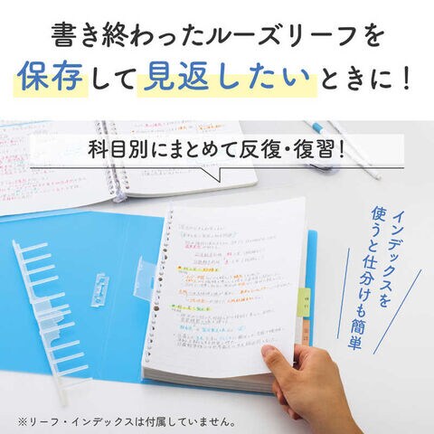 B5サイズ/26穴(JIS規格)のルーズリーフを保管できます。