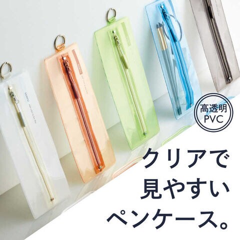 材質はPVCを使用しており、中身が見える透明素材のペンケースです。