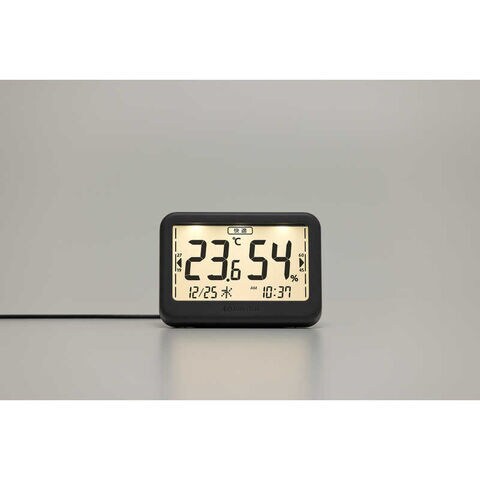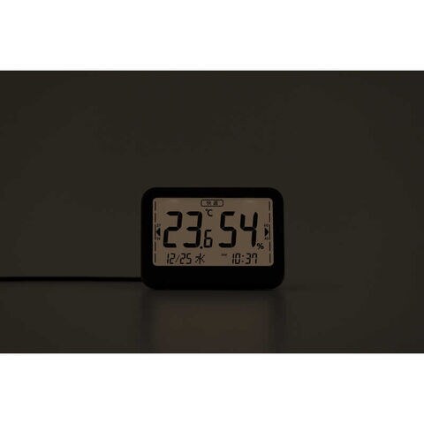 USBで給電するとバックライトが常時点灯し、昼夜を問わず表示が見やすいことが特徴の温湿度計です。