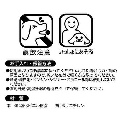 ビニール製で笛付。噛むと「ピュー」と鳴るから好奇心が刺激され、ワンちゃん大喜びです。