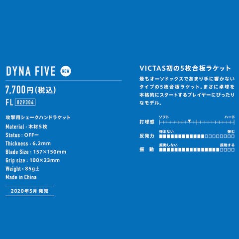 VICTAS 卓球ラケット シェークハンド ダイナファイブ DYNA FIVE(攻撃用/FL) 029304