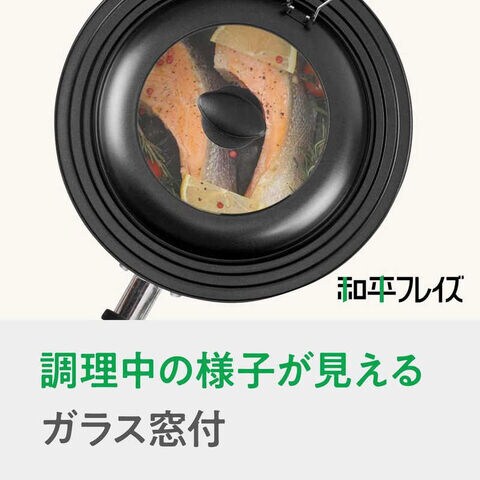 調理中に中身を確認できるガラス窓付です。